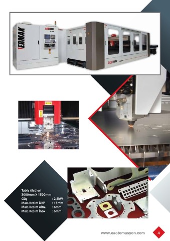 Tabla ölçüler 3000mm X 1500mm Güç : 2,5kW Max. Kes m DKP : 15mm Max. Kes m Alm. : 6mm Max. Kes m İnox : 6mm www.eaotomasyon.com 4